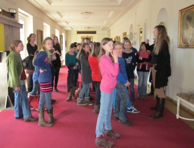 Sie erzählten uns viele interessante Dinge. So erfuhren wir, dass die Mitarbeiter dieses Jahr sehr viel Stress haben, da das Theater dieses Jahr 100 Jahre alt wird. Während wir weiter durch Schauspielhaus geleitet wurden, erfuhren wir weitere interessante Dinge über das Theater, z.B. dass im Schauspielhaus ca. 270 Menschen als Plastiker, Maskenbildner, Schauspieler, Techniker, Regisseure u.a. arbeiten, dass das Theater von 1911 bis 1913 gebaut wurde und dass die Werkstätten sich 112m entfernt vom Staatschauspiel befinden.