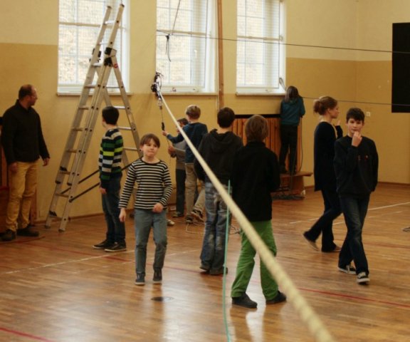 Nachdem die Kinder gestern die Seilbahn aufgebaut hatten, konnten sie sich heute entspannen, indem sie Spiele wie Monopoly, Schach, "Mensch ärgere dich nicht" und vieles mehr spielten. Die Teilnehmer des Projekts freuten sich nach der gestrigen Anstrengung sehr über die Abwechslung. Da das Seilbahn-Projekt u.a. von Frau Baldow (Mathelehrerin) betreut wurde, wurden die Spiele natürlich mit Mathe verbunden. Zum Beispiel musste man bei "Mensch ärgere dich nicht" ausrechnen, wie hoch die Wahrscheinlichkeit ist, eine Sechs zu würfeln.