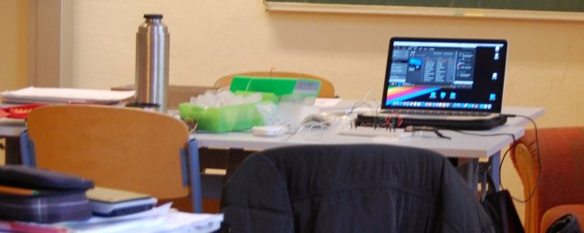 Zwei Schüler fanden sich heute zum Arbeiten in der Schule ein, um dort ihrem Ziel, die Präsentation zu vollenden, möglichst näher zu kommen. So arbeiteten beide an ihren Laptops und unterhielten sich, denn der Spaß darf ja auch nicht zu kurz kommen.