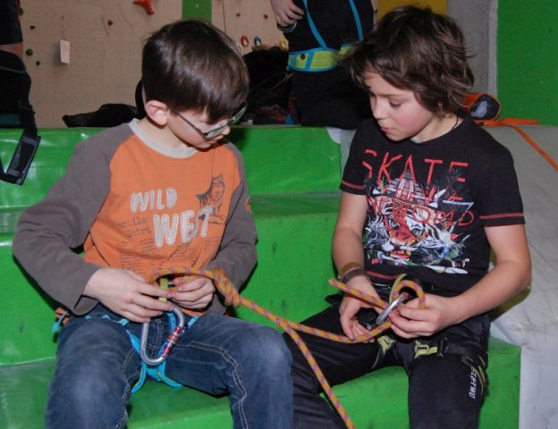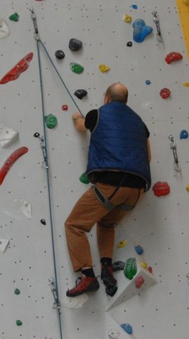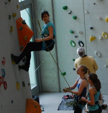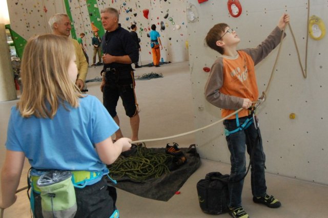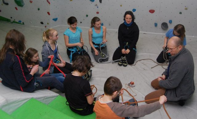 Der Projektleiter, Herr Hartmann, zeigte den Schülern in der SBB-Kletterhalle in Dresden die Grundlagen des Kletterns. Sie lernen dort z.B., wie man sich sichert. Des Weiteren zeigt Herr Hartmann den Schülern, wie man vorsteigt oder wie man bowldert.