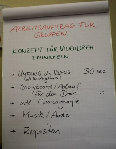 Die große Projektgruppe teilte sich in vier kleinere Gruppen, die alle unterschiedliche Musikvideos zu einer selbstausgewählten Musik drehten.