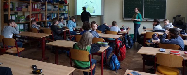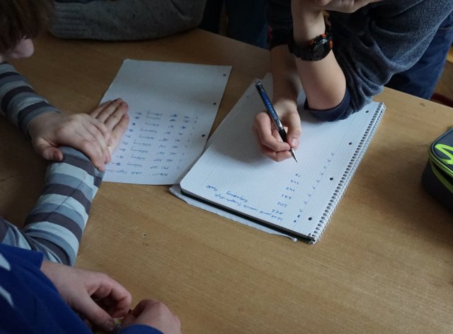 Als wir kamen, hatten die Schüler des Projekts schon eine Karte von Tharandt vor sich liegen und hörten Herrn Kahl und Frau Geißler gespannt zu. Um das Umgehen mit Koordinaten zu üben, bestimmten die Schüler erst die Koordinaten der Schule und im Anschluss die Koordinaten der Tharandter Bergkirche. Am Ende der Übung wurde beides verglichen. Nachdem die Gruppe sich mit diesen Aufgaben gut auf ihre Bewegung im Gelände vorbereitet hatte, hatten sie Mittagspause.
