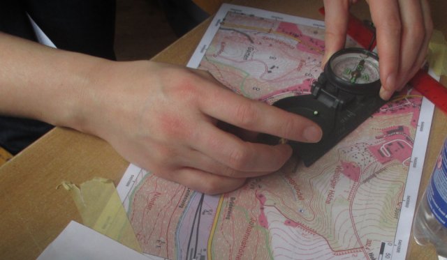 Nach dieser erholsamen Pause ging das Projekt weiter; jetzt sollten die Schüler auf ein Blatt schreiben, welche Zeichen und Formen sie auf der Karte sehen und was diese vermutlich für Bedeutungen hatten. Auch das wurde im Anschluss mit Herrn Kahl und Frau Geißler ausgewertet. Anhand dieser Ergebnisse konnte dann eine Legende erstellt werden, welche Herr Kahl an die Tafel schrieb. Als auch das erfolgreich abgeschlossen war, wurde der Kompass eingeführt, besprochen und ein paar kleinere Übungen durchgeführt. Um einen schönen Abschluss für den Tag zu haben, ging die Gruppe raus und übte anhand einiger Spiele, was sie zuvor gelernt hatte.