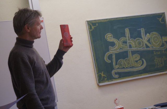 Danach wurden Schokoladenstücken mit 70% Kakao ausgeteilt, um die darauffolgende Aufgabe zu versüßen, bei welcher man eigene Gedanken zu der Geschichte aufschreiben und einen Vergleich zwischen seinem eigenen Leben und dem des Mädchens ziehen sollte.