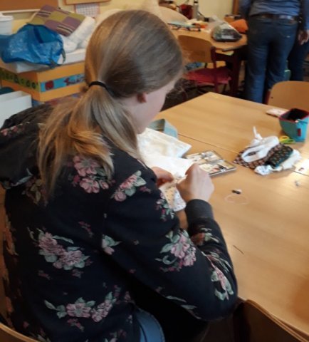 Dies machen die Schüler alles in sechs Stunden. Wer fertig ist, kann seinen eigenen Ideen freien Lauf lassen und in die Wirklichkeit umsetzten, z.B. Handyhüllen, Kopfbänder, Mützen, Schleifen etc.