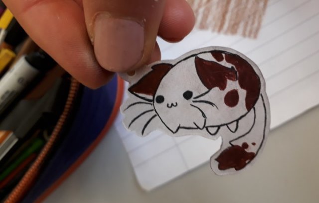 Nach dieser sehr interessanten Belehrung wurde uns dann noch gesagt, dass wir aufpassen müssen, welches Plastik wir benutzen, wegen der Schadstoffe. Sie gab allen ein verwendbares Material, dann fingen wir an Anhänger herzustellen.