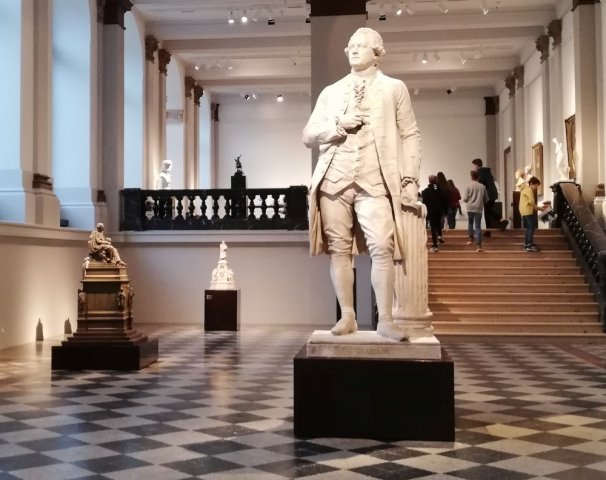 Im Albertinum schauten sie sich zuerst die eindrucksvolle Mosaikhalle an, wo die Schüler vorgegebene Aufgaben erledigten. In der Halle gibt es viele Skulpturen aus Gips und Marmor, außerdem hängen an den Wänden Ölgemälde. In der Mitte der Halle steht eine Statue von Gotthold Ephraim Lessing.
