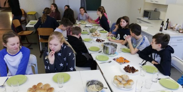 Im Hauswirtschaftsraum des EGT bereiteten die Schüler, Speisen wie "Mohnkügelchen", "Pule" oder "Mostbrötchen" zu.
