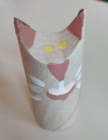 Dann ging es in das Thema UPCYCLING über, Frau Geißler klärte, was das ist und wie es der Natur hilft. Sie zeigte noch ein paar Ideen (Fotos) für UPCYCLING mit Kleidungsstücken, Konservendosen und anderen Dingen, dann begannen die Schüler und Schülerinnen mit Material, das Frau Geißler mitgebracht hatte, eigene Ideen zum UPCYCLING zu verwirklichen. Sie nutzten z.B. leere Milchkartons, leere Toilettenpapierrollen, Konservendosen und vieles mehr. Zum Schluss kamen viele unterschiedliche Ergebnisse heraus, wie zum Beispiel Katzen aus Toilettenpapierrollen, Aufbewahrungsboxen aus Milchkartons usw.