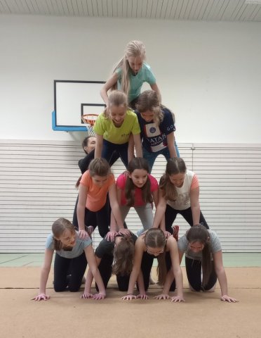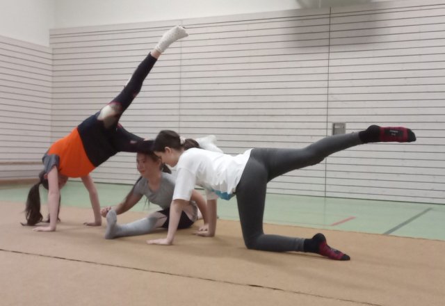 Nach der großen Mittagspause stellten wir Buchstaben akrobatisch da. Alle hatten ihren Spaß.
