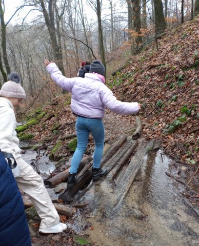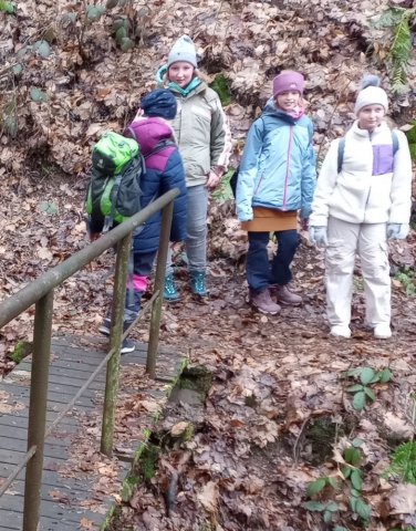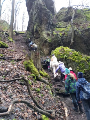 Nachdem wir angekommen waren, machten wir eine Wanderung im Rabenauer Grund. Es gab einen kleinen Klettersteiig an einem Felsen (fast alle trauten sich).