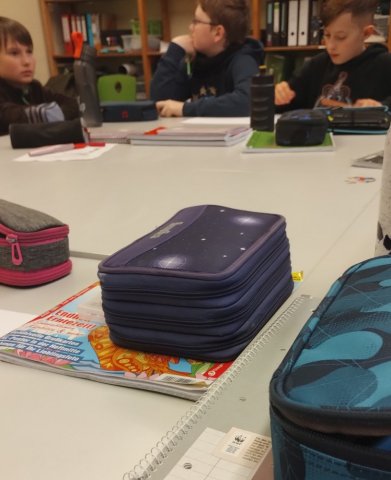 Da wir in den nächsten Tagen auch zufällige Personen aus dem Schulgebäude interviewen wollen, wurde auch schon eine Fotoecke mit Beleuchtung, Kameras etc. aufgebaut, um die Antworten fotografisch festzuhalten. Die nötigen Requisiten waren auch schnell gefunden. Mit ihnen gab es dann noch lustiges Verkleiden und eine Runde durchs Schulhaus, wobei sehr viel Gekicher und interessante Kommentare im Spiel waren.
