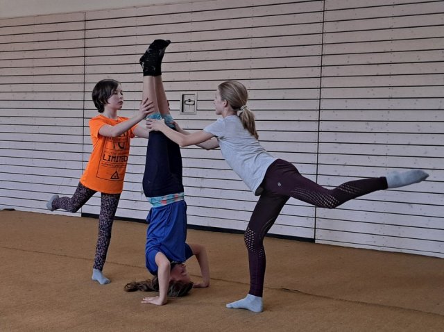 Als Allererstes haben wir eine Erwärmung gemacht. Dann haben wir den Tagesplan festgelegt, anschließend eine Einführung ins Jonglieren bekomen.