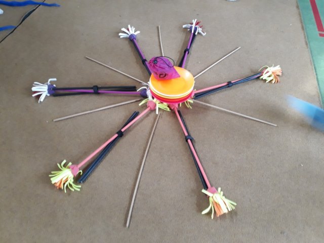 Frau Magister hat der Gruppe schließlich noch eine Einführung gegeben für den Flowerstick, den Poi und das Tellerdrehen. Dazu gab es dann auch noch eine Übung.