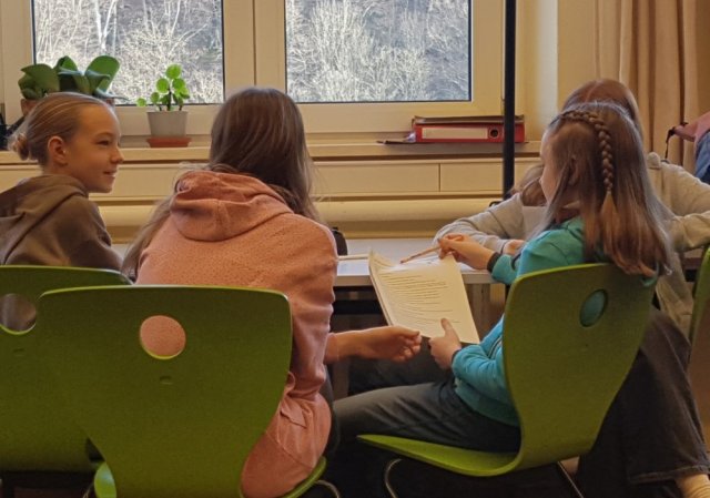 Beim Einlesen der Texte gibt es einige Unruhe. Die Lehrer, Frau Wenzel und Herr Schlag, stellen deswegen mehrere Räume zur Verfügung, damit jede Theatergruppe in Ruhe proben kann.