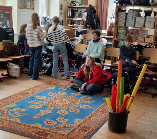 Außerdem ist heute der Musik-Grundkurs Klasse 11 da und begleitet uns in unserem Projekt.