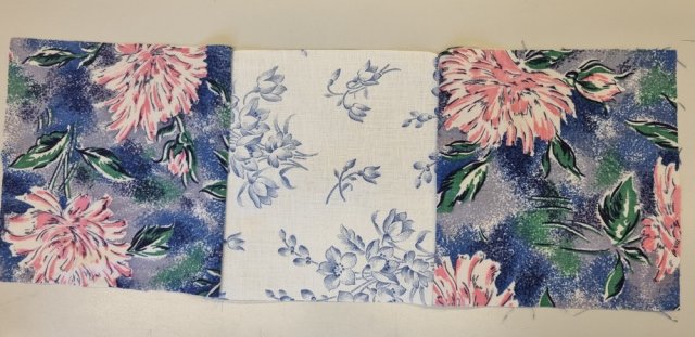 Um das Niner-Patch zu nähen, musste man 9 Stoffquadrate, jedes 15 cm mal 15 cm, zuschneiden. Bevor sie sie zuschnitten, mussten sie sie aber noch bügeln.