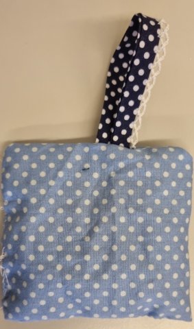Das Lavendelkissen: Zwei Stoffstücke wurden zugeschnitten, genäht und durch eine Öffnung wurde Lavendel hinein gefüllt. Diese wurde dann mit dem Matratzenstich zugenäht und es war fertig. Man konnte auch noch ein Band daran machen. Wenn man nicht fertig war, konnte man es noch Zuhause beenden. Eigentlich konnte man sich aber aussuchen, was man näht, und es gab nur Vorschläge. Also war es dann quasi freie Nähzeit.