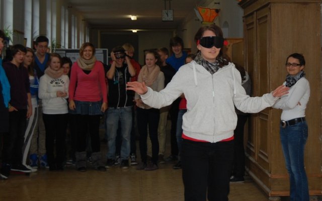 Einen Tag später sah man die Zehntklässler abwechselnd mit einer seltsamen Brille über den oberen Gang wandeln. Man simulierte übermäßigen Alkoholgenuss - ohne Alkohol!