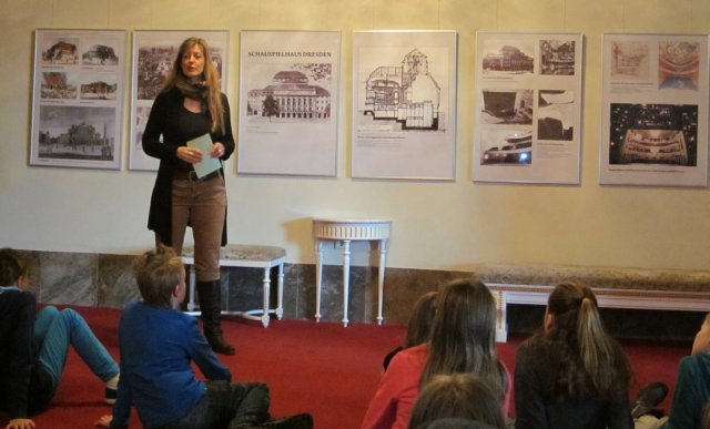 Danach verabschiedeten wir uns und fuhren mit der Straßenbahn zum Theater der jungen Generation. Im TJG machten wir erst einmal Mittagspause. Anschließend begrüßte uns die Theaterpädagogin Frau Jung. Hier wurde uns wieder viel Wissenswertes erklärt, z.B. dass das TJG das zweitälteste Kinder-und Jugendtheater Deutschlands ist, dass es früher eine Tanz-und Vergnügungsgaststätte war und dass es drei Säle gibt: Theater auf der Treppe, großes Theater und Studiobühne.