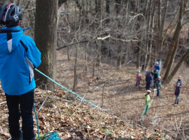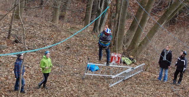 Im Wald wurde heute die Seilbahn aufgebaut, dafür wurden mehrere Seile geworfen und gespannt. Es war sehr lustig alle mit ihren Helmen zu betrachten. Dann war es soweit: der Fünftklässler Christoph konnte als erster Schüler die Seilbahn nutzen. Es sah wirklich sehr spaßig aus, leider durften wir Reporter nur zuschauen.
