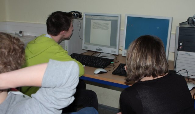 Wie am Tag zuvor gab es wieder Probleme mit den PCs. Die Hälfte war einfach nicht anzukriegen! Aber Herr Erli konnte das Problem schnell beheben und an vielen PCs wurde bald darauf fleißig an Artikeln gewerkelt oder für andere Projekte beispielsweise eine Urkunde erstellt. Immer routinierter geht es voran. Alle haben sich in ihre Arbeit eingefunden und es dauert nun nicht mehr so lange, bis alle Texte fertig korrigiert sind und auf die Website kommen können.