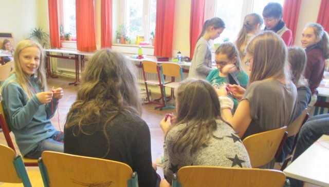 Am Montag, dem 01.02.2016, startete das Projekt „Häkeln, Stricken, Sticken“ im Raum 107. Die Leiterinnen, Frau Lück-Ley und Frau Lange, luden an diesem Tag Frau Mildner ein. Mädchen der 5 und 6 Klassen häkelten Tiere und Mützen in einer ruhigen Atmosphäre. Viele schöne Sachen wie eine wollige Mütze für kalte Tage können entstehen.