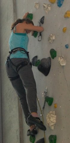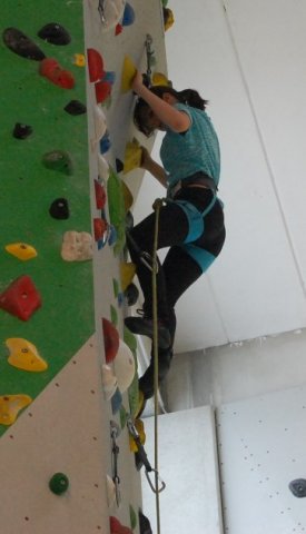 Der Projektleiter, Herr Hartmann, zeigte den Schülern in der SBB-Kletterhalle in Dresden die Grundlagen des Kletterns. Sie lernen dort z.B., wie man sich sichert. Des Weiteren zeigt Herr Hartmann den Schülern, wie man vorsteigt oder wie man bowldert.