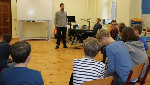 Die aus 16 Schülerinnen und Schülern bestehende Projektgruppe hatte sich für die vier Tage das Ziel gesetzt, unter der Leitung von Herrn Schumann und Herrn Krahmer ein eigenes Musikvideo zu drehen.