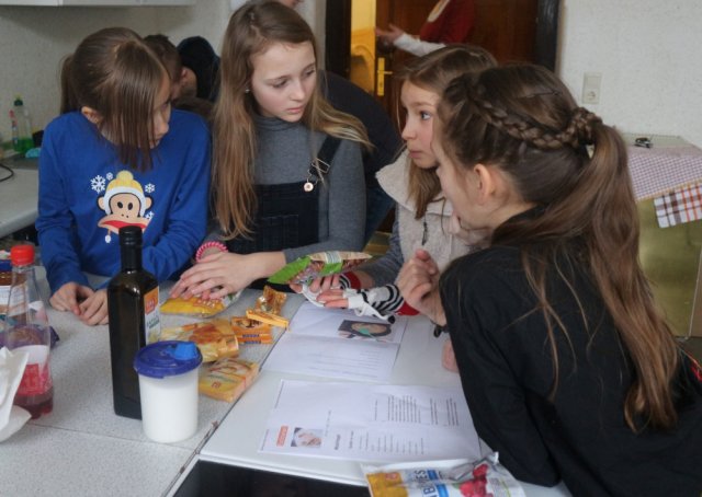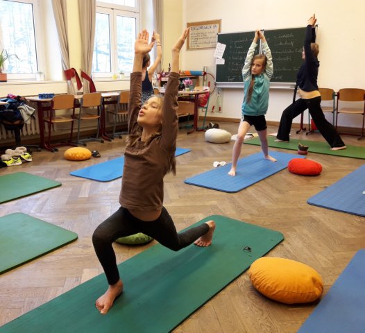 Am Montag, dem 6. Februar 2017 begann das Projekt Yoga und Ernährung mit einer einführenden Besprechung und einem Kurzfilm über die wichtigen Nährstoffe und die Nahrungspyramide. In der Besprechung wurde festgelegt, was in dieser Projektwoche gekocht oder gebacken werden soll. Geeinigt wurde sich schließlich auf einen Müsliriegel, Eierkuchen und einen Milchshake. Nach dem Gespräch und dem einleitenden Film wurden die Inhaltsstoffe verschiedener Lebensmittel analysiert. Über den Industrieschwindel wurde sich anschließend ebenfalls ausgetauscht. Auch wurde darüber geredet, dass die Industrie zum Beispiel bei Joghurt auch Sägespäne oder Karotten statt Erdbeeren nimmt und die Aromen der Erdbeere in diese Ersatzprodukte führt. Nach der der Mittagspause begann dann die Einführung für den anderen Teil des Projektes. Nun war Yoga an der Reihe. Erst wurde sich entspannt und danach massierten sich die Schülerinnen gegenseitig. Als Abschluss des Tages wurden noch verschiedene Übungen ausgeführt und somit war der Tag beendet.