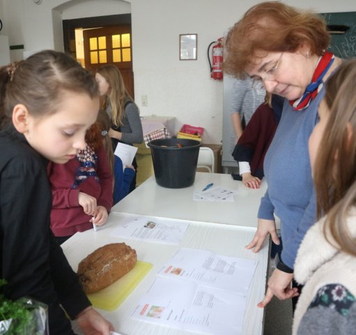 Am Mittwoch ermöglichte Frau Hummel allen Projektbeteiligten kostenlos Brote zu backen; die Küche bietet dafür den besten Platz und deshalb startete das Projekt dort. Zuerst wurden alle Schülerinnen in Gruppen aufgeteilt und jede hat ein Rezept bekommen. Nachdem der Teig zusammengemischt und gut umgerührt war, wurde er auf Blechen und in Formen verteilt und in den Ofen geschoben. Während Brot und Brötchen im Ofen waren, machten die Schülerinnen selber Butter und noch einen Dip, dazu wurden noch Tomate, Paprika und Karotten aufgeschnitten. Als die Brote fertig waren, wurde erst einmal gegessen und es schmeckte allen sehr gut. Nach einer kleinen Pause war es wieder Zeit für Yoga. Am Anfang bekamen die Schülerinnen noch Zeit ihre Mandalas vom Vortag weiter auszumalen und danach entspannten sie sich bei einer Massage. Als Abschluss machten die Schülerinnen noch einige Yogaübungen mit Frau Hausold.