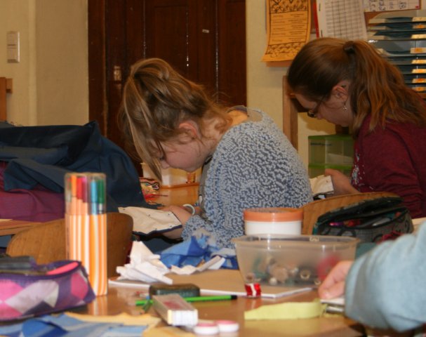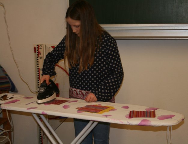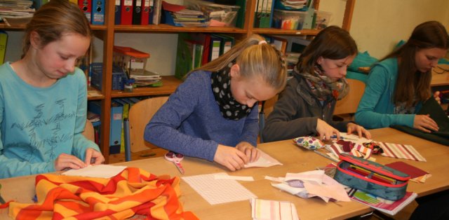 An diesem Tag haben einige Schüler die Vorderseite der Bezüge schon fast beendet. Es herrschte eine ruhige und konzentrierte Atmosphäre.