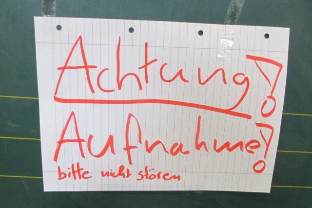 Die Schüler teilen sich in die unterschiedlichen Charaktere ein und nehmen verschiedene Geräusche, wie z.B. spucken, schreien oder knarren von Dielen oder Türen auf.