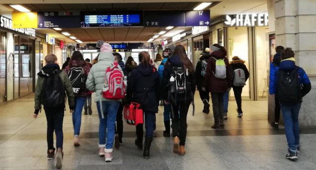 Die Schüler vom Projekt "Römische Antike" fuhren am Dienstag mit der S-Bahn nach Dresden, um das Albertinum zu besichtigen.