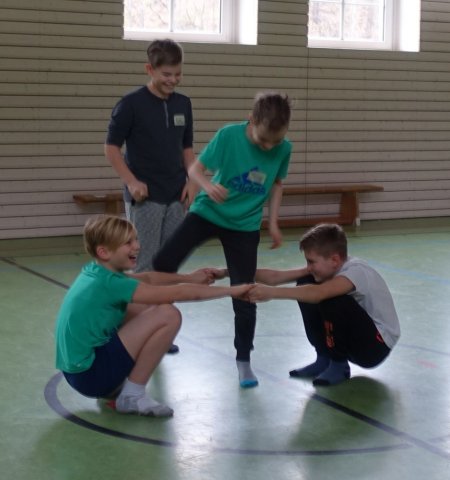 Als sich alle Schüler/-innen zum Schluss noch einmal im Zimmer versammelten, massierten sie sich gegenseitig. Ein angenehmer Abschluss der Stunde! Den Rest des Tages machten die Teilnehmer Entspannungsübungen und danach freuten sich schon alle aufs Bowlen morgen.