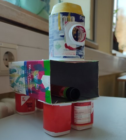 Dann ging es in das Thema UPCYCLING über, Frau Geißler klärte, was das ist und wie es der Natur hilft. Sie zeigte noch ein paar Ideen (Fotos) für UPCYCLING mit Kleidungsstücken, Konservendosen und anderen Dingen, dann begannen die Schüler und Schülerinnen mit Material, das Frau Geißler mitgebracht hatte, eigene Ideen zum UPCYCLING zu verwirklichen. Sie nutzten z.B. leere Milchkartons, leere Toilettenpapierrollen, Konservendosen und vieles mehr. Zum Schluss kamen viele unterschiedliche Ergebnisse heraus, wie zum Beispiel Katzen aus Toilettenpapierrollen, Aufbewahrungsboxen aus Milchkartons usw.