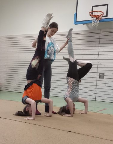 Nach der großen Mittagspause stellten wir Buchstaben akrobatisch da. Alle hatten ihren Spaß.