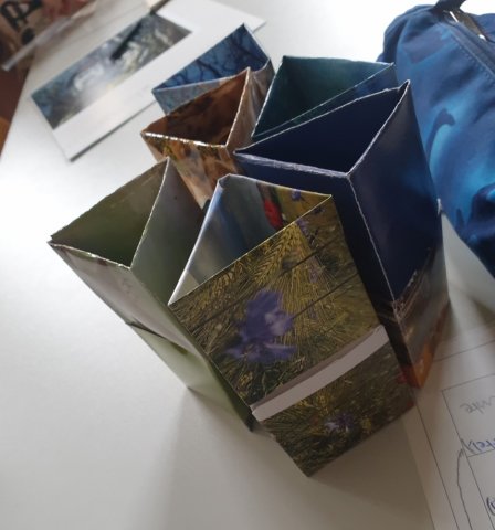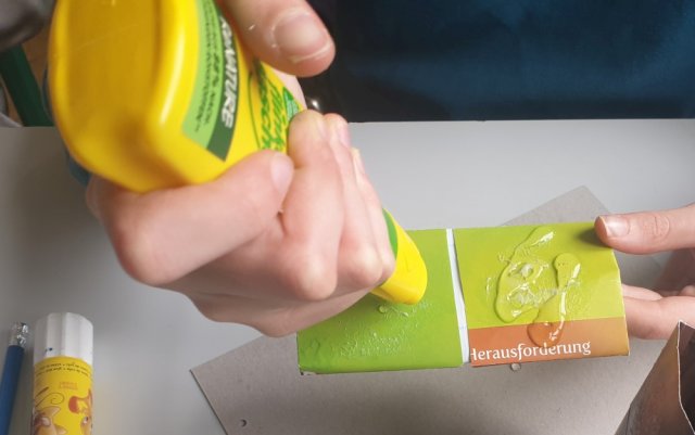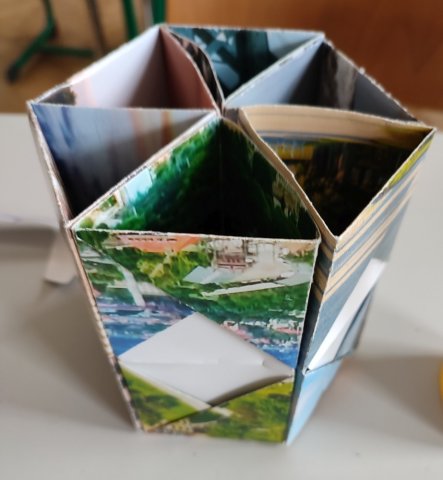 Die Leute, die in der Zeit nichts zu tun hatten, haben aus einem alten Kalender coole und bunte Stifteboxen oder Organizer gebastelt.