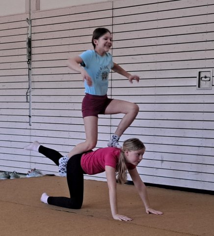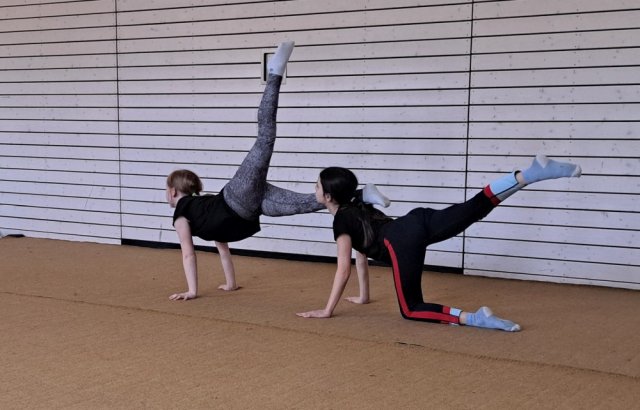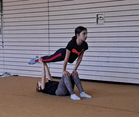 Als die Schulreporter hinzukamen, hat die Gruppe gerade mit Zweierübungen angefangen. Frau Magister und Frau Witt leiten das Projekt, die teilnehmenden Kinder haben dort viel Spaß.