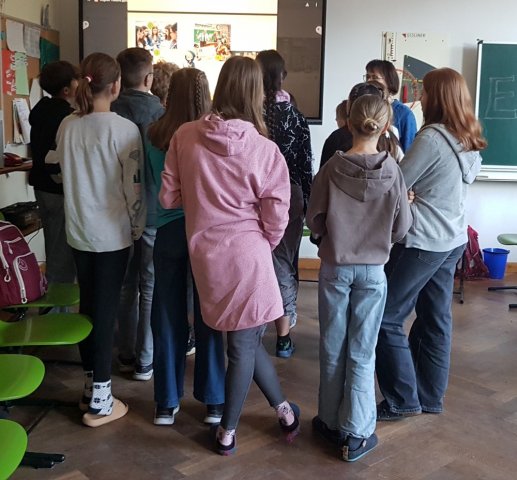 Als wir das volle Klassenzimmer 202 betreten, springt uns die pure Lust und Begeisterung für die englische Sprache förmlich ins Gesicht: Viele begeisterte Kinder machen aktiv bei den Kennenlernspielen und Arbeitsaufträgen mit.