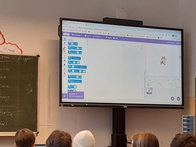 Nach dem Spielen erhielten die Kinder ihren ersten Programmierauftrag, der darauf abzielte, ihr bisher erworbenes Wissen anzuwenden. Gemeinsam werteten wir die entwickelten Spiele aus, was nicht nur das Verständnis vertiefte, sondern auch die Fähigkeit zur kritischen Reflexion und zum konstruktiven Feedback förderte.